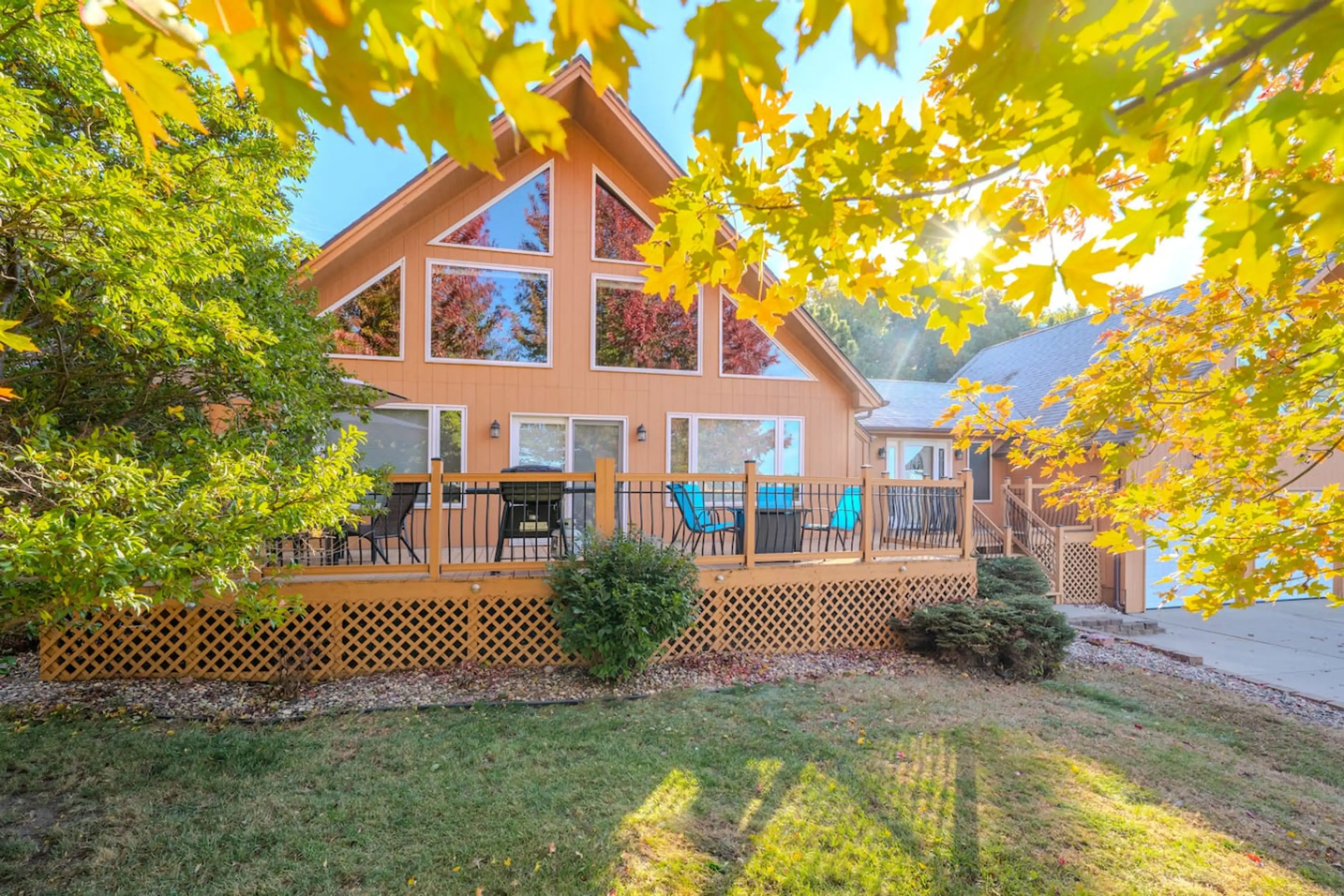 Serene, cabin-style escape minutes from Sioux Falls—huge, warm, and spacious. 3BR, 2 full + 2 half baths. Gather in the grand entry and enjoy the double-sided fireplace. Game wing features pool table, foosball, Roku TVs, balcony + half bath. Unwind in the sunroom with skylights or on the front/back ...